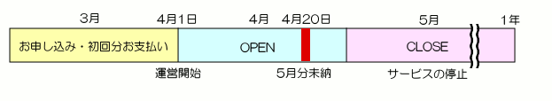 ●契約満了日までに翌月分の入金がされない場合は、満了日翌日以降に本サービスが停止となります。